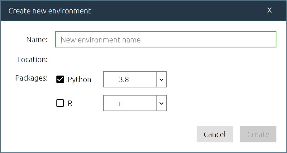 추가적으로 환경을 설치하고 싶은 경우 Create를 눌러 환경을 생성한다.