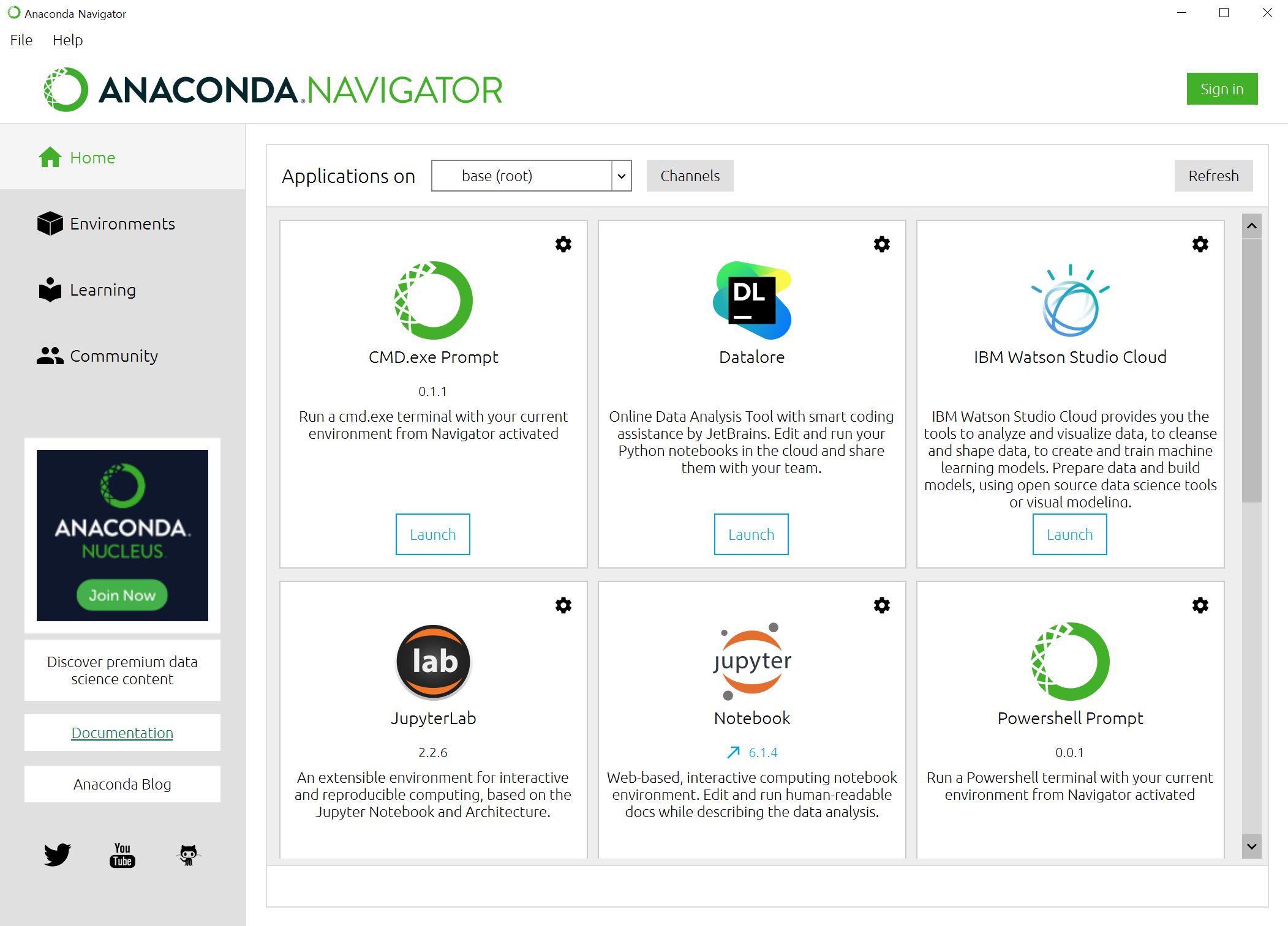 먼저 Anaconda Navigator (anaconda3)를 실행하면 아래와 같은 창이 실행된다.