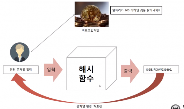 전 강의에서 해시에 대해 설명하였는데, 이 해시값이 채굴에 핵심입니다.